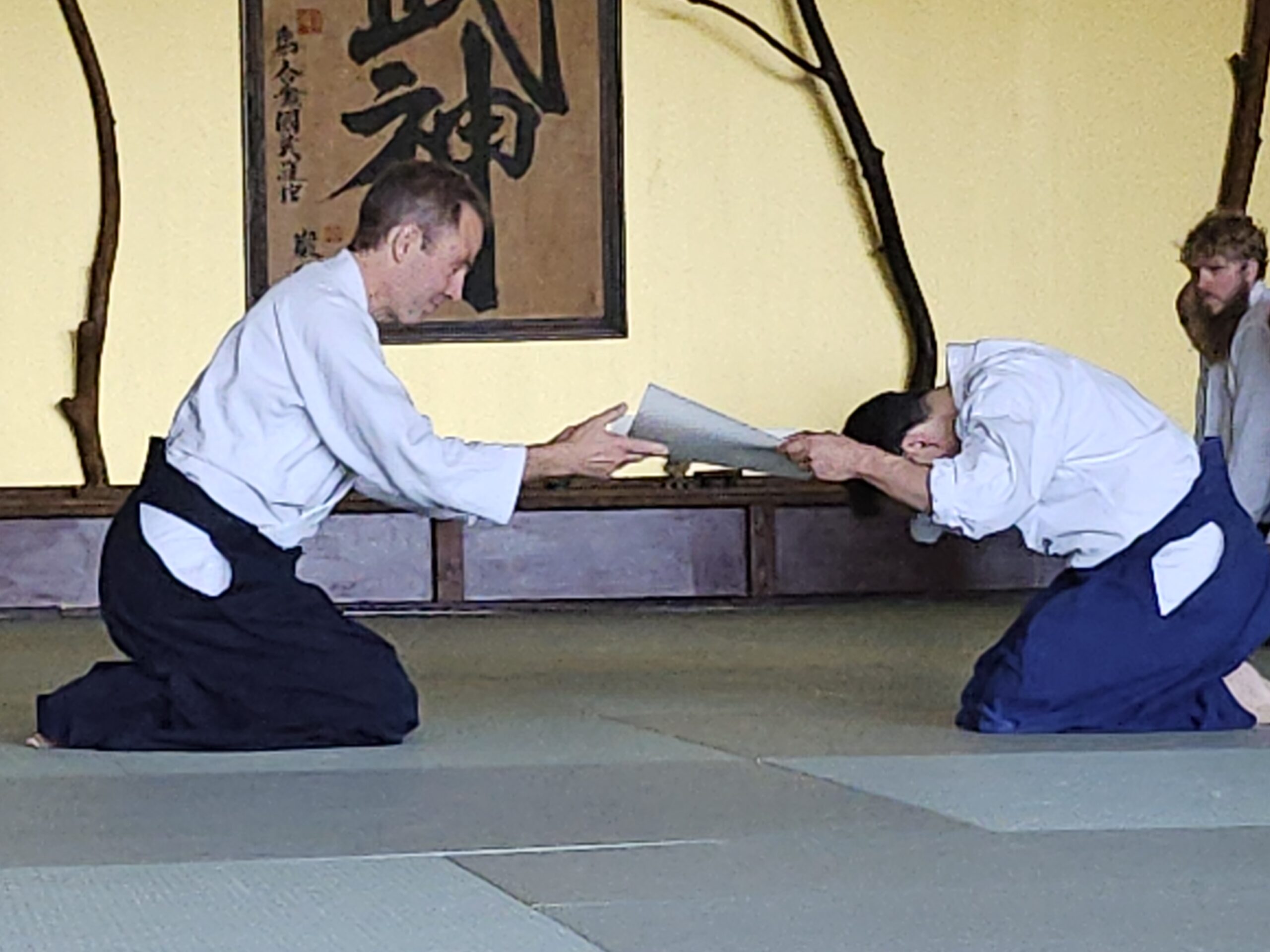 Also congratulations to Chicago Aikikai members Randy Smith (testing for shodan), Patrick Miller (testing for nidan) and Dwight Sora (receiving his certificate for yondan), and thanks to all of the instructors and members who helped them prepare and took ukemi for testing.